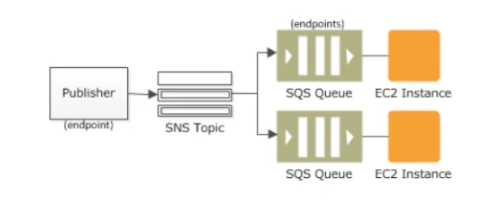 - SNS publisher will push the message to a topic.