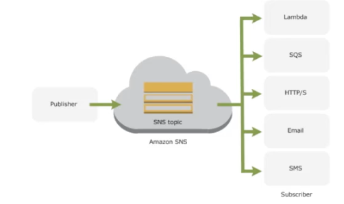 - SNS subscriber will subscribe to a topic and will receive message when pushed by publisher.